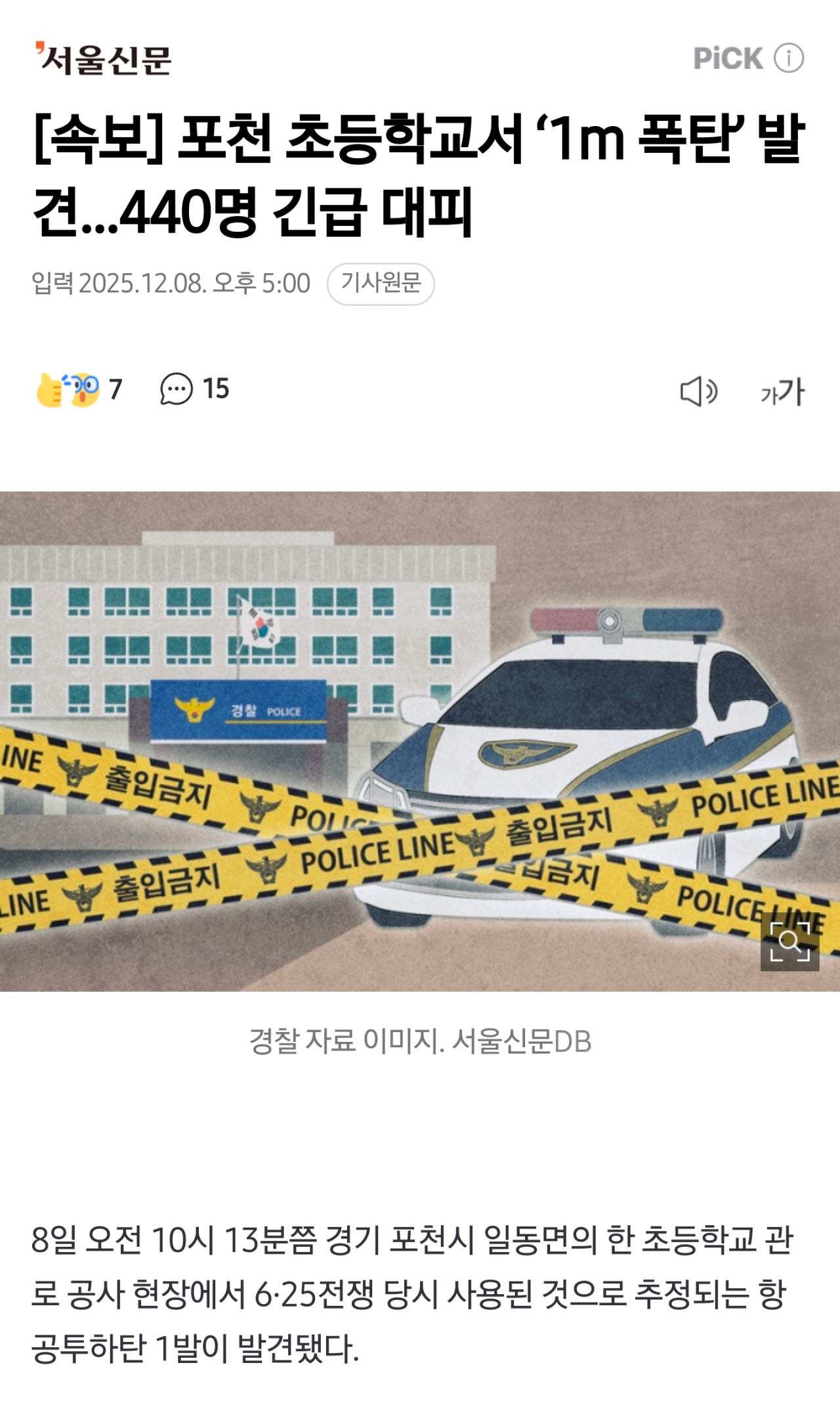 포천 초등학교서 ‘1m 폭탄’ 발견…440명 긴급 대피 유머관리자 2025-12-08 20:14 555 0 목록 https://n.news.naver.com/article/081/0003599025?type=breakingnews&cds=news_edit