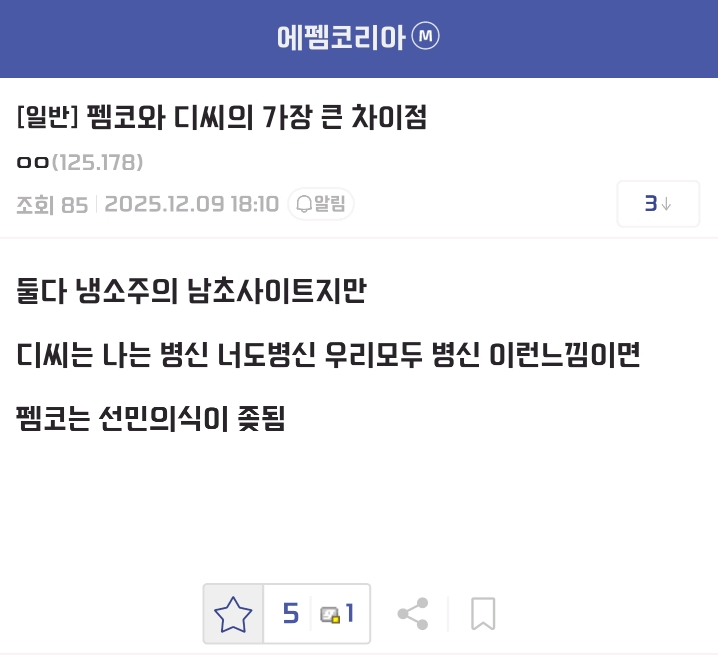 디시인이 팩폭하는 펨코와 디시의 차이점
