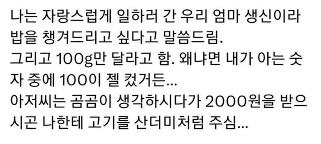 2000원에 소불고기를 산더미처럼 퍼주는 정육점