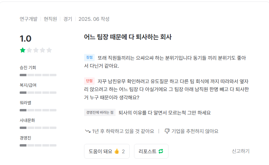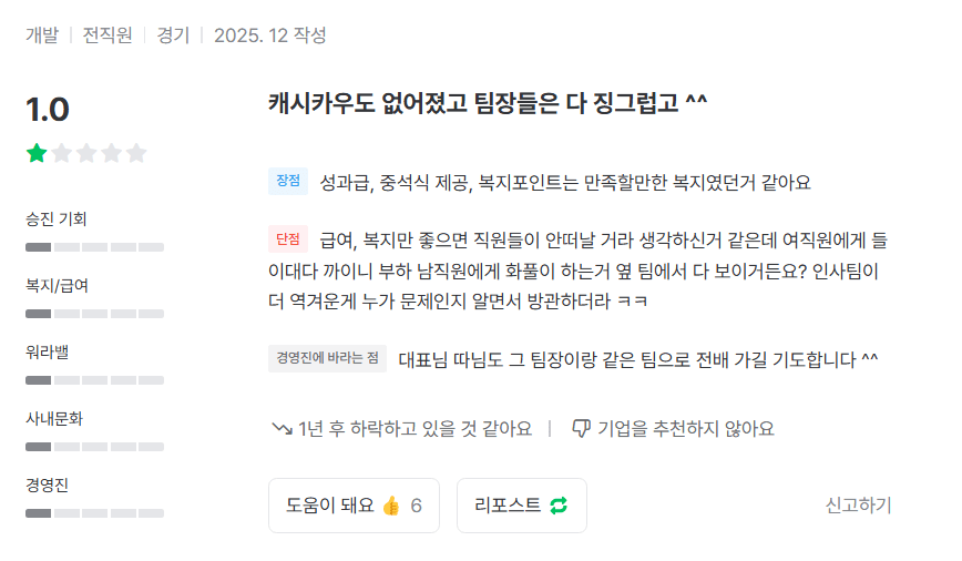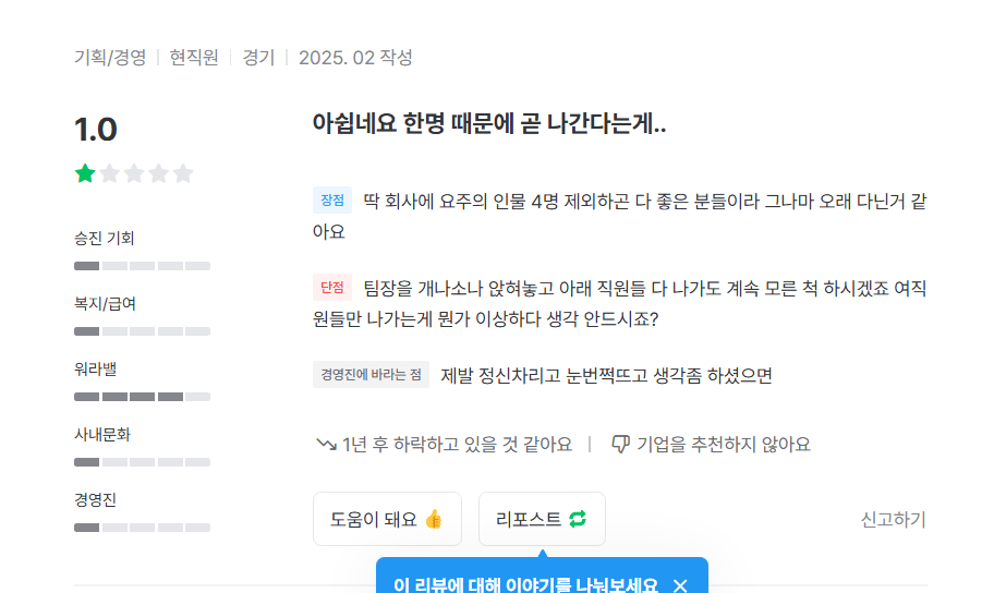 잡플래닛으로 영포티 내부고발하는 여직원들