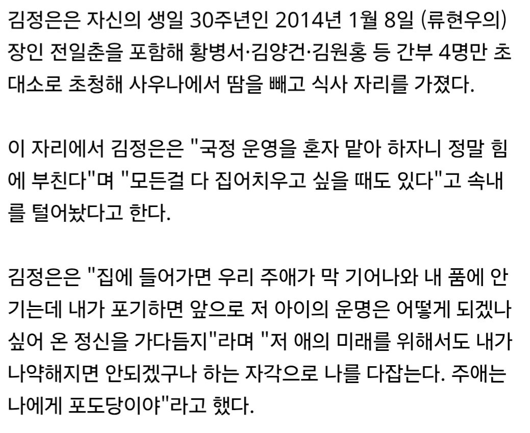 일 그만두고 싶지만 딸을 보며 마음 다잡고 힘내는 아빠 유머관리자 2025-12-11 13:31 511 0 목록 참고로 저 김정은 김주애 이야기를 들려준 전일춘은 자기 사위랑 딸이 탈북한 이후에도 평양에서 쫓겨나지 않고 사는 중.
