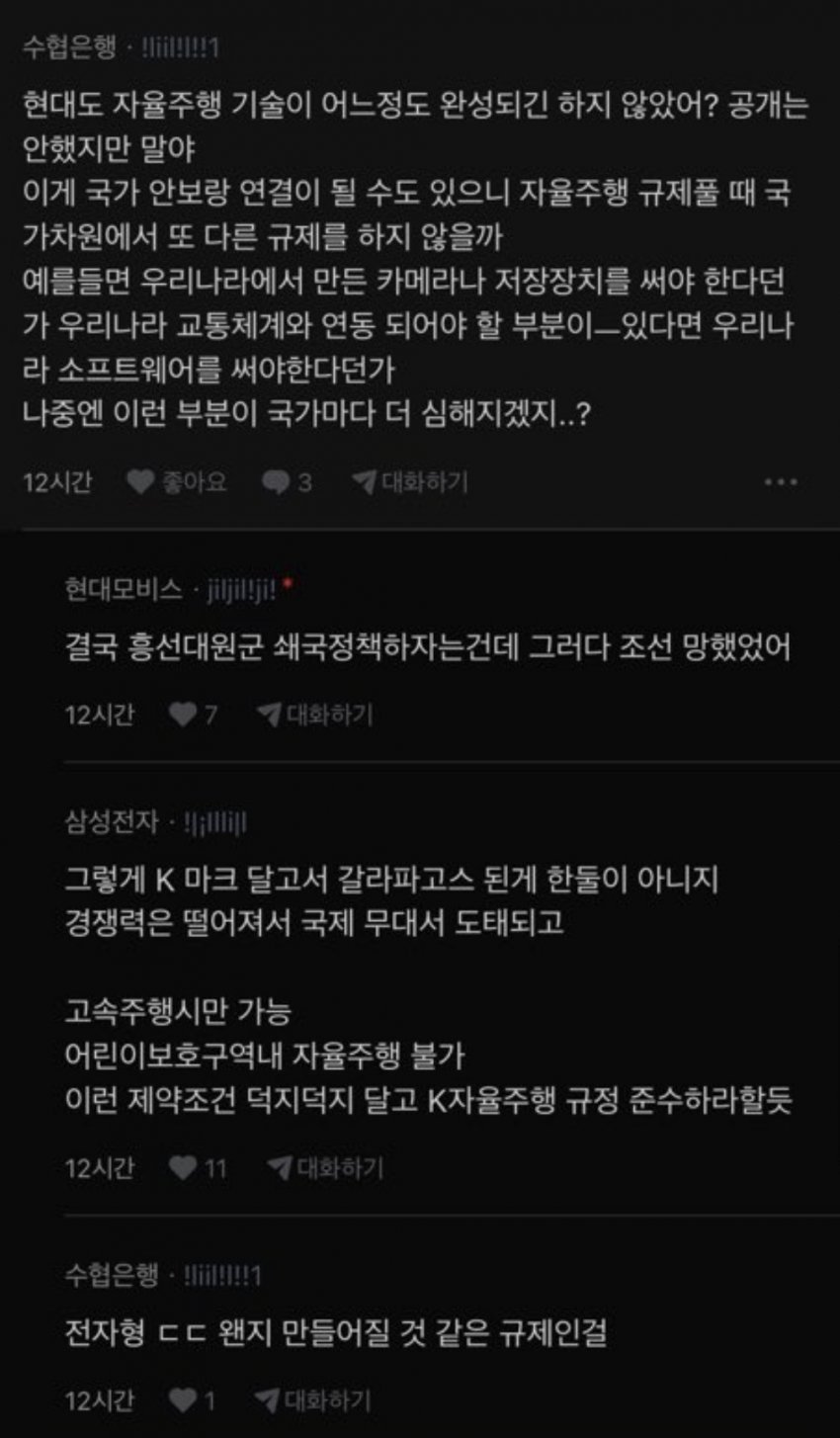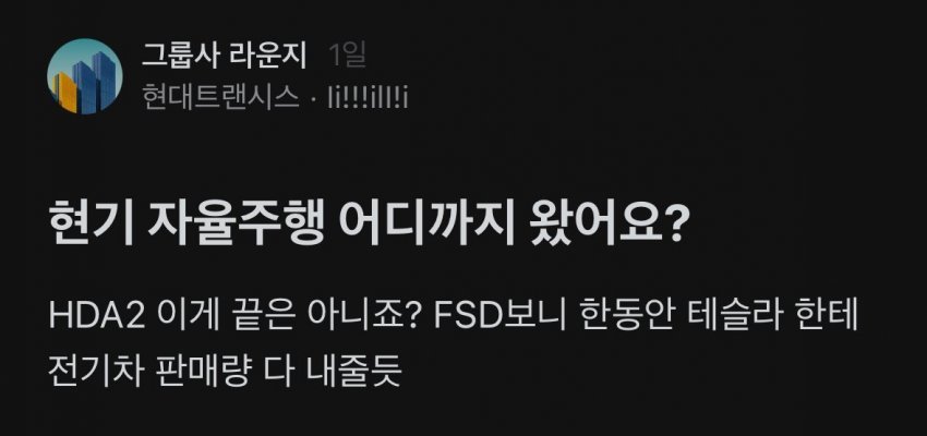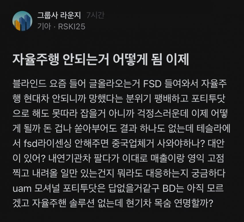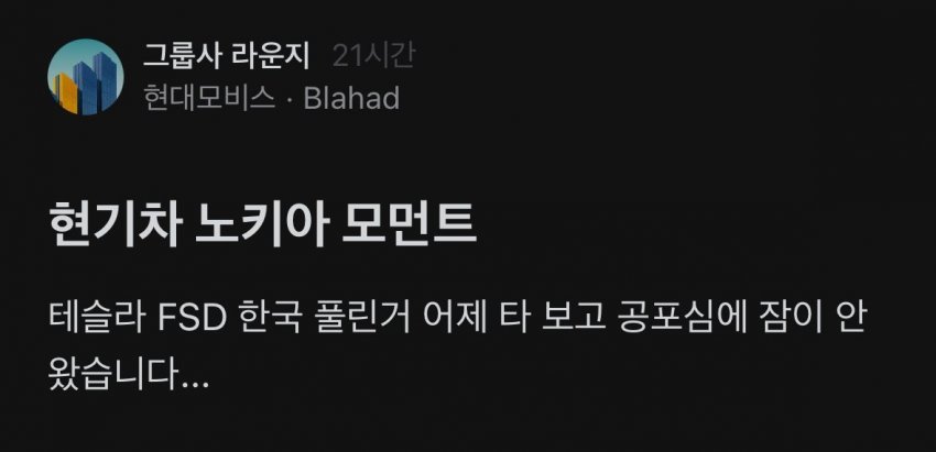 테슬라 FSD 도입에 대한 현대차 블라인드 글들