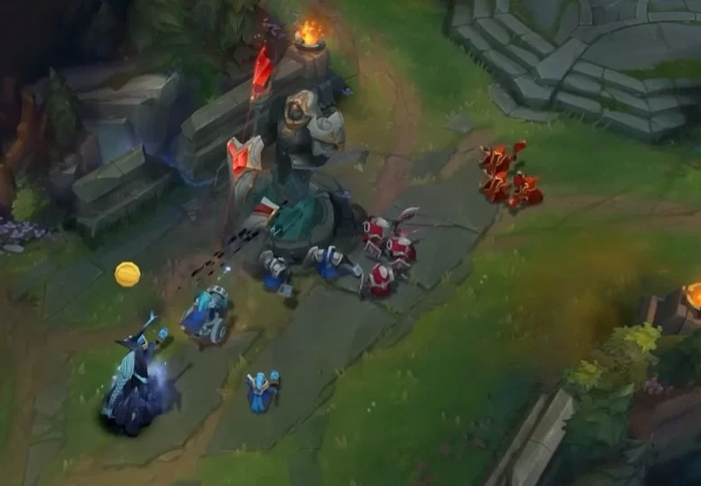 포탑에 시간이 지날 수 록 수정이 쌓이고 치면 터짐(스플릿 더 빨라짐)