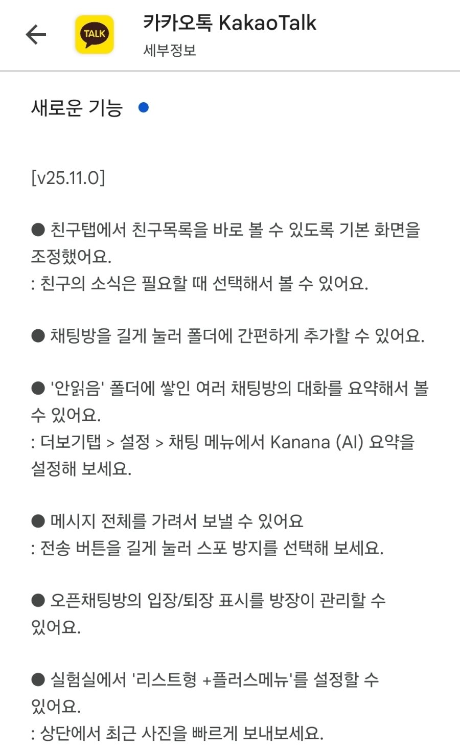 카카오톡 친구목록 갤럭시도 업데이트 완료