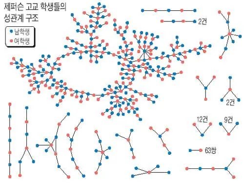 미국 고등학교 성관계 실태조사 레전드 유머관리자 2025-12-20 22:03 504 0 목록 성관계 한 애들끼리 선으로 연결했더니 저런 구조가 완성됨... 돌고돌아 거대한 고리를 만들어냄그중 인상적인 몇가지들가운데 혼자 떨어진 파란 점은.... 앗.....