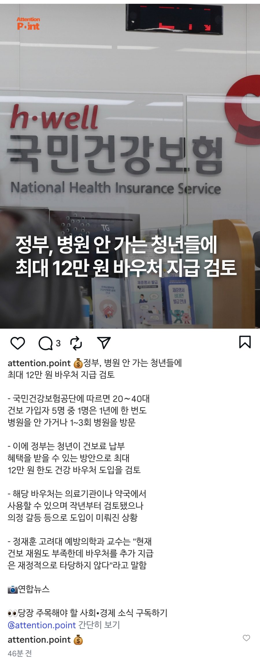 병원 안가는 청년들에게 최대 12만원 바우처 지급