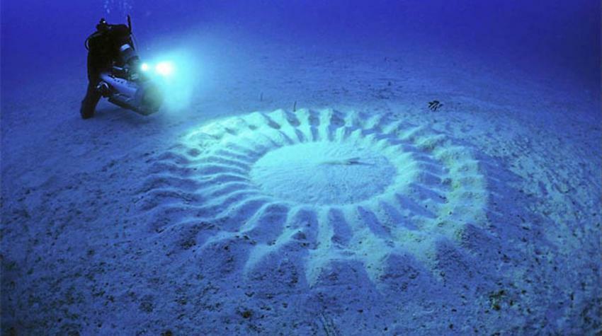 수컷 복어의 암컷을 향한 구애활동 유머관리자 2025-12-22 22:34 555 0 목록 수컷 복어는 며칠 동안 모래에서 작은 지느러미를 펼쳐 능선과 골짜기를 만들어거의 완벽한 원을 만듭니다한가운데에 조개껍데기와 산호로 장식을 합니다암컷이 감명을 받았다면 한가운데에 알을 낳습니다