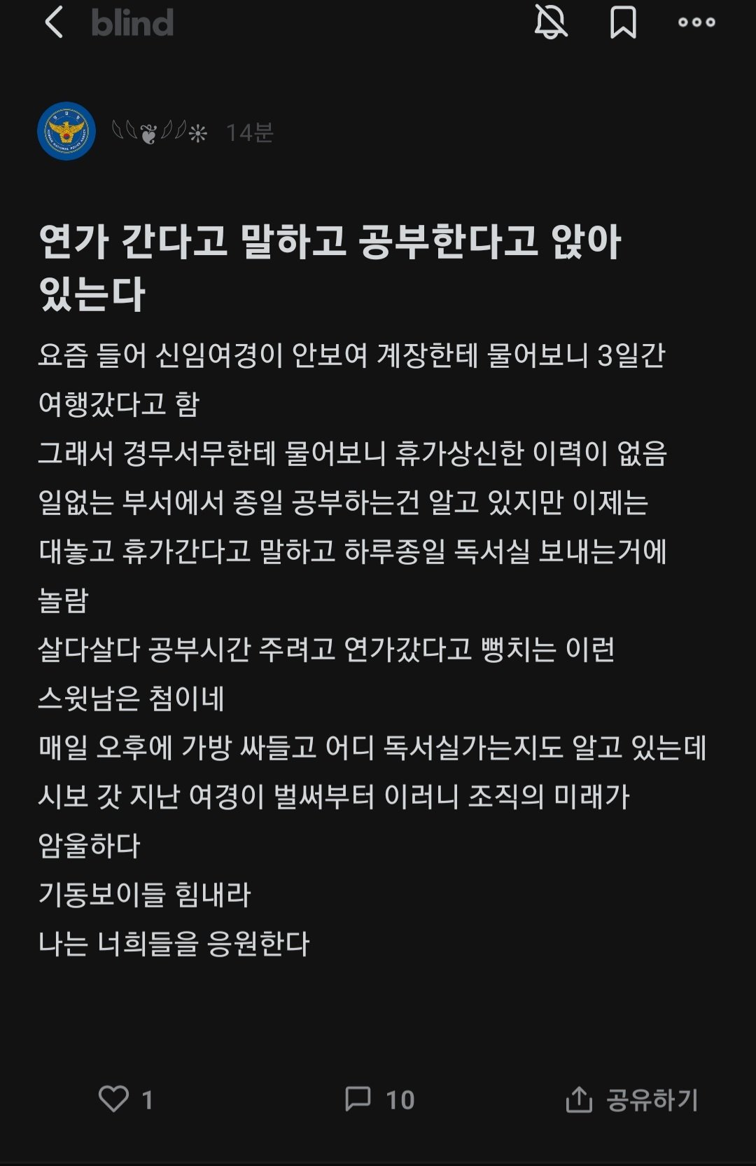 요즘 신임 여경이 안 보여서 어디 갔나 봤더니