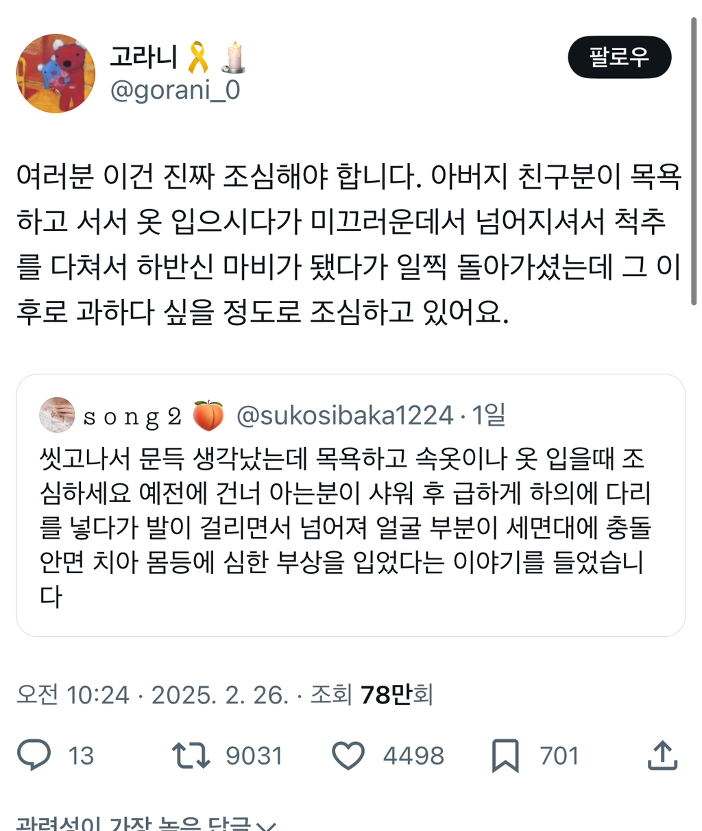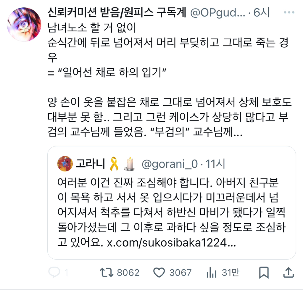 목욕하고 속옷이나 옷 입을때 조심하세요