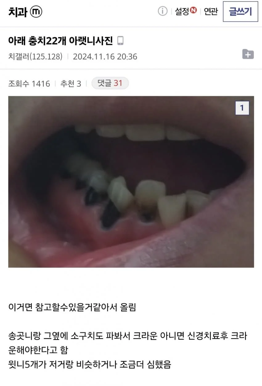 혐주의) 디시 치과갤 레전드 충치 인증
