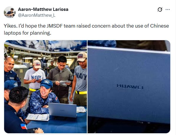 며칠 전 일본 자위대 필리핀 연합훈련 논란 유머관리자 2025-12-04 18:39 593 0 목록 화웨이 노트북이 자위대 필리핀 연합훈련에서 등장해서 논란 ㄷㄷ 저게 자위대가 소유한거냐 아니면 필리핀군에서 쓰는건데 자위대 보라고 잠시 방향을 돌려놓은거냐 논란이지만 어쨋든 둘 다 중국하고 사이가 안좋은 국가인데 그 와중에 화웨이 노트북이 부대에서 쓰이고 있다는거 자체가 논란 ㄷ 통신보안은 되나 이길 생각이 없는건지