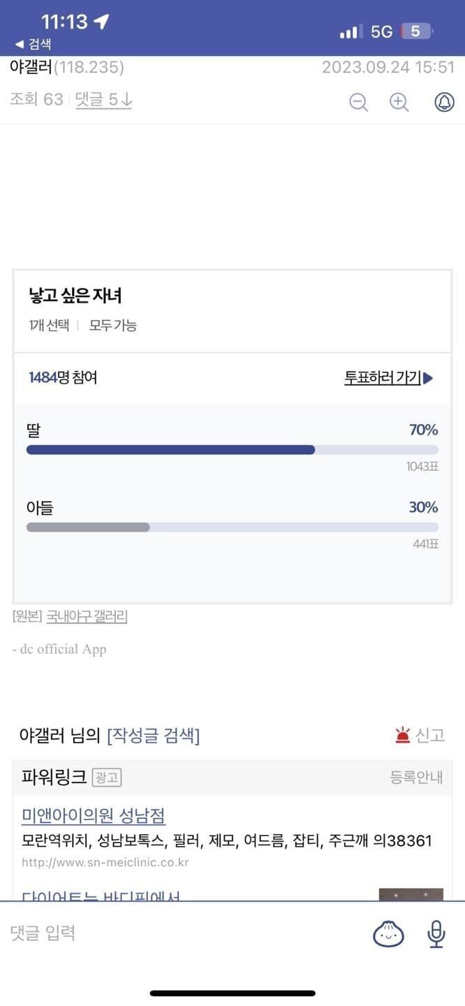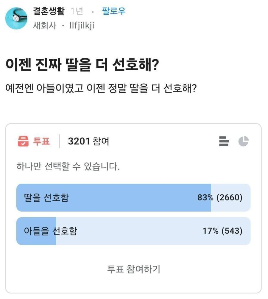 웃긴건 2030 남초 사이트도 압도적 딸 선호..