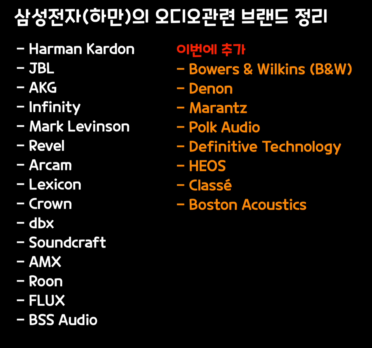 세상 모든 오디오(스피커) 브랜드 죄다 인수하고 있는 삼성 유머관리자 2025-12-04 18:33 597 0 목록 하만을 2016년에 9조원에 100% 인수하고, 하만 산하에 세계적인 하이엔드 오디오 브랜드를 죄다 삼키는 중....