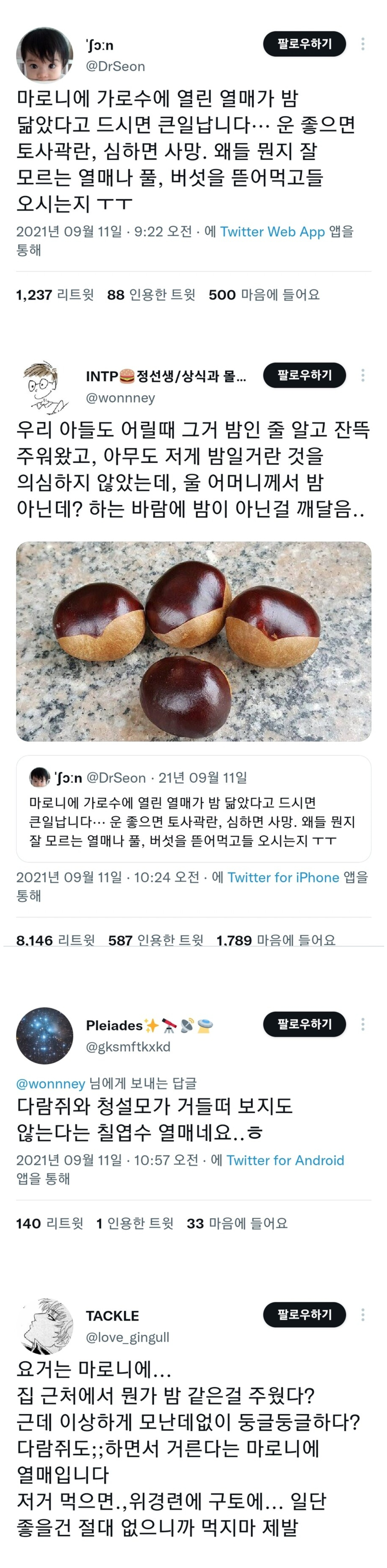 밤처럼 생겼지만 먹으면 큰일나는 열매