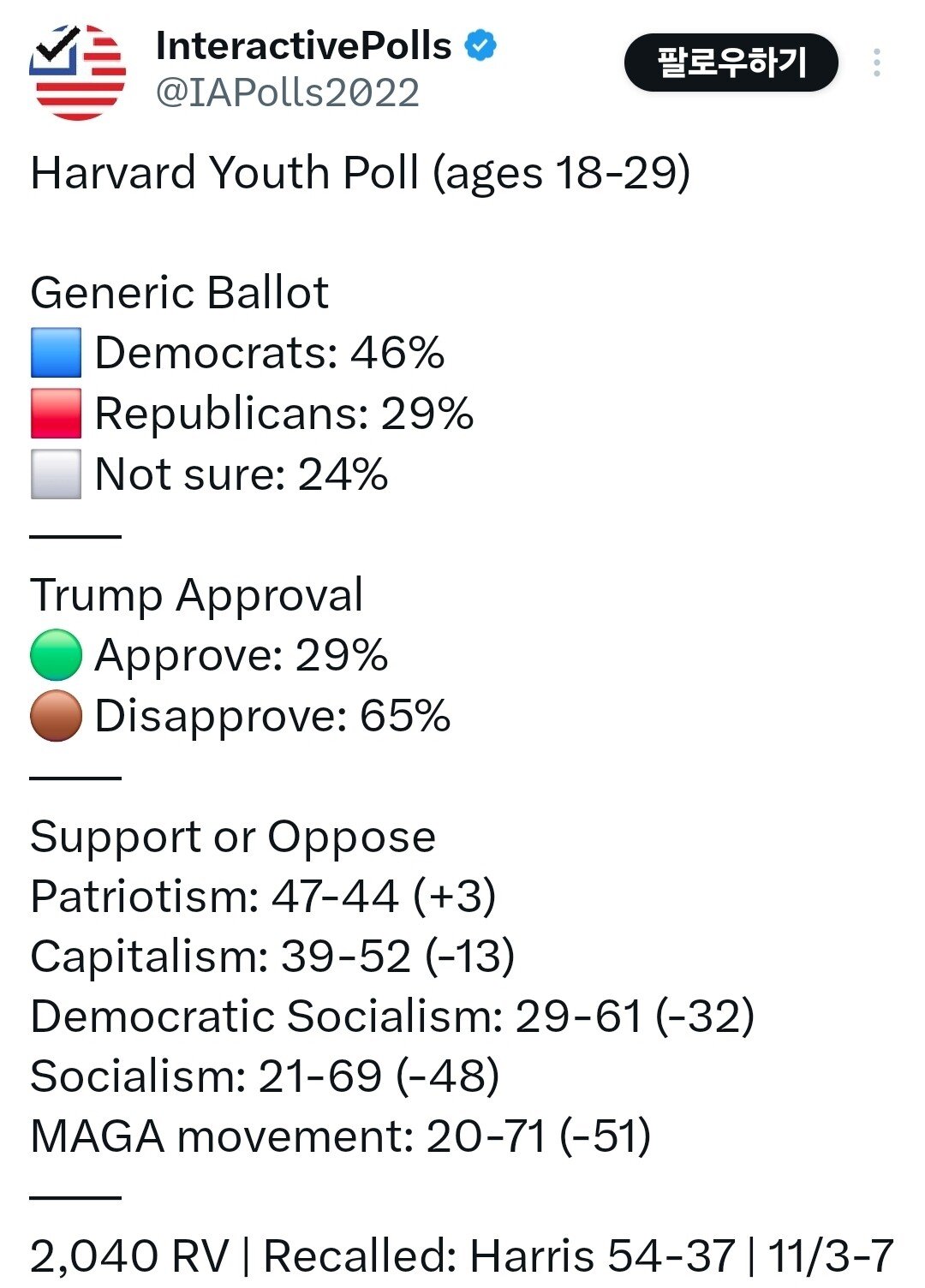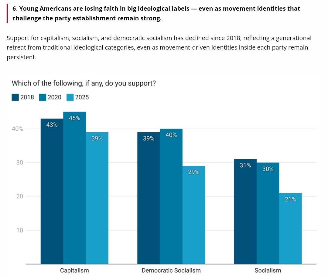 자본주의,민주사회주의,사회주의 모두 인기가 올해 역대 최저치임